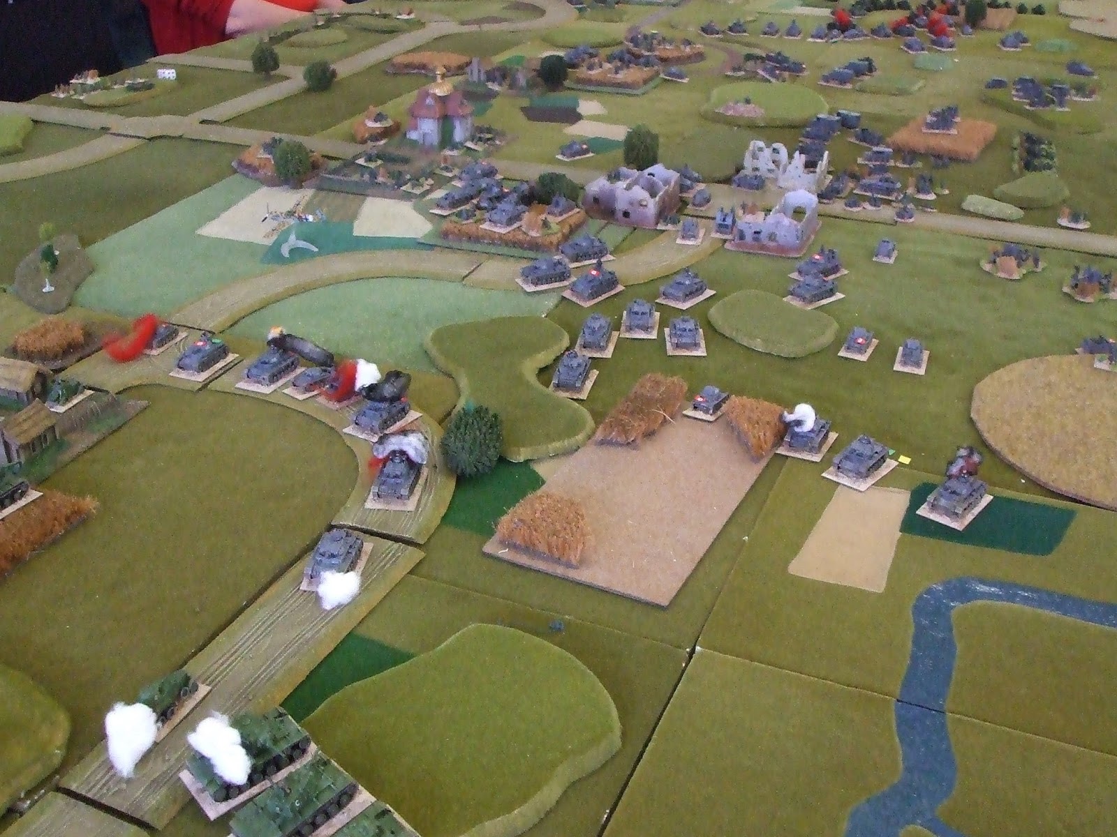 Fortunately for Von Grommitt his second brigade now arrived and advanced quickly towards the partially completed works. The Comte saw the danger and deployed three battalions to hold the works and personally led two more towards the threatened sector. His men arrived just in time. Regiment Zurlaben had been attacked by Hessian regiments Erbprinz, and Lowenstein. Although the French had held the first attack, a renewed effort had forced its way over the works. Zurlaben was falling back in disorder and had dragged Toulouse with it leaving a gaping hole in the French lines. Von Grommitt's plan seemed to be on the verge of success, but on the allied left, below the hill affairs had taken a turn for the worse.